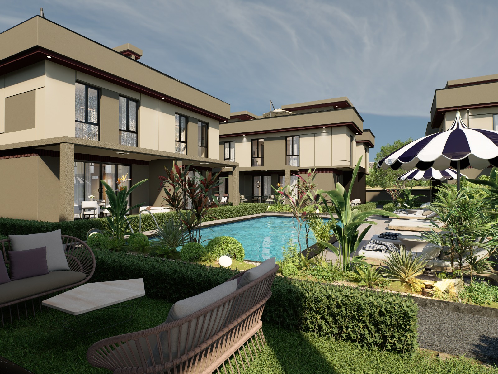 Özel havuz, geniş teras alanları ve yüksek kalite standartları ile tasarlanan villalar, hem konfor hem de prestiji bir arada sunmaktadır.